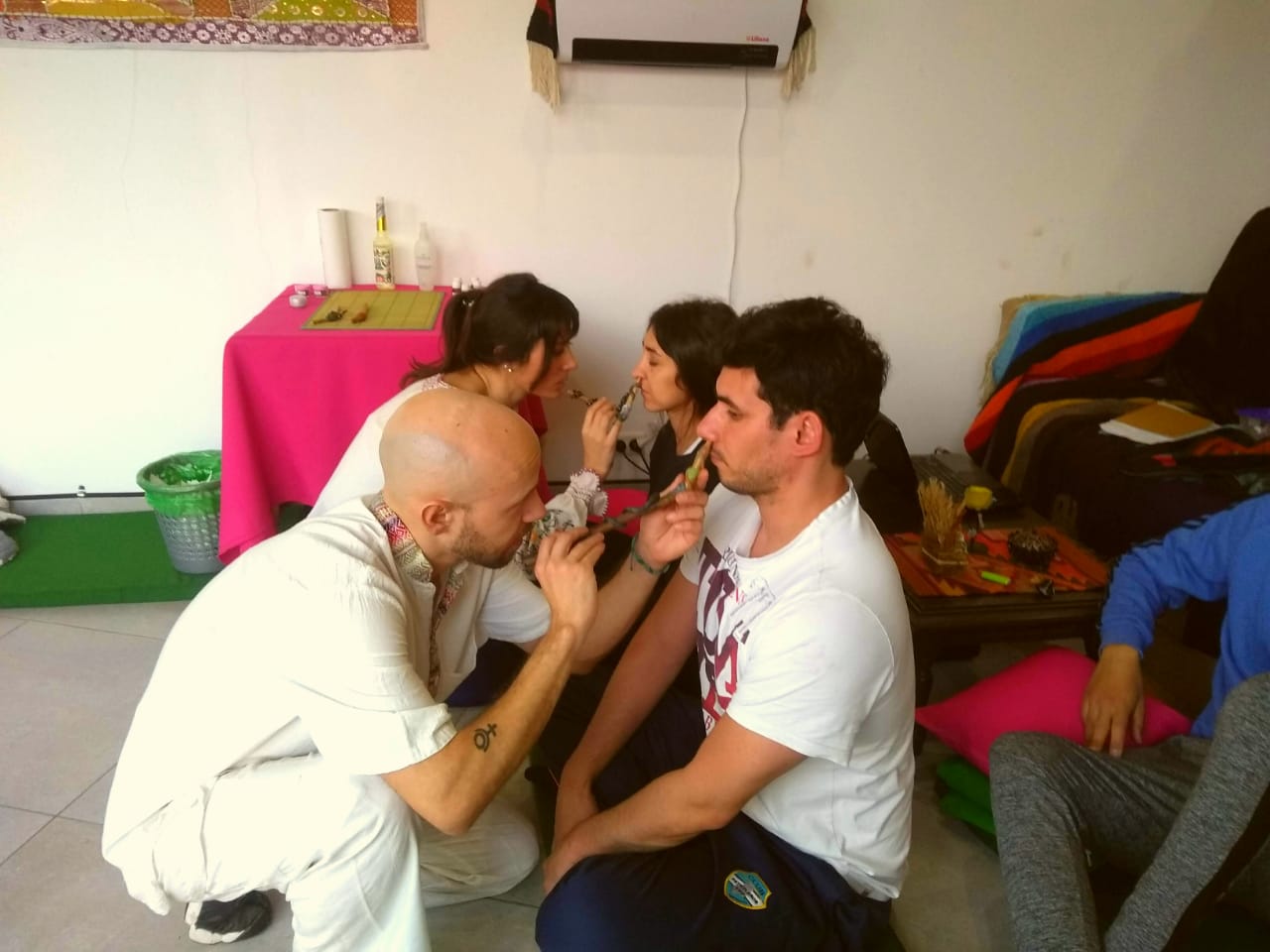 Las dinamicas que hacemos durante el taller tienen un papel central, ya que son las que llevan la atención y la energía que desbloqueamos con el rapé hacia sensaciones y actitudes mas positivas para nosotros.
